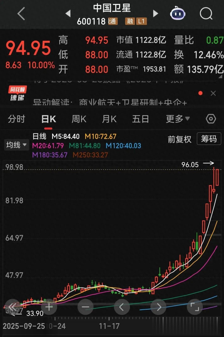 当市场狂欢的烟花在夜空绽放,商业航天赛道的五只股票涨停收官。中国卫星稳坐国家队交椅,航天电子的机构目标价预示着34%的潜在空间。